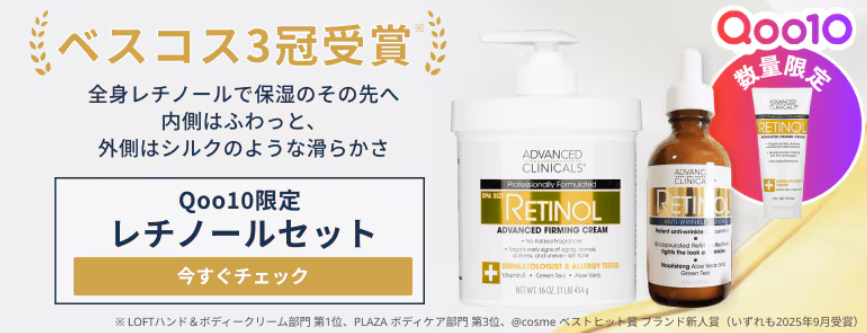 「レチノール初心者が雑に全身塗りするには最高」って感じです(笑)